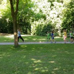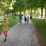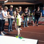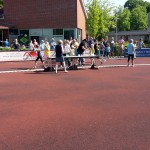 Die Strecke verlief über dem Sportplatz und an der Stever entlang, wo einige Bäume kühlen Schatten spendeten. Alle 400 m bekamen die Läufer und Läuferinnen von helfenden Eltern eine Unterschrift.