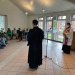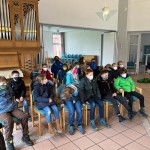 Vor der Kirche haben wir gemeinsam die beiden Lieder „Hevenu shalom alchem“ und „Herr, gib uns deinen Frieden“ gesungen. Frau Wulff hat uns dabei auf ihrer Gitarre begleitet.