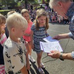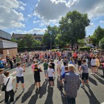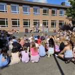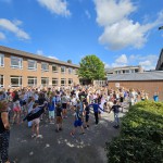 Alle Kinder der Bonhoefferschule versammelten sich auf dem Schulhof, um den teilnehmenden Kindern zu applaudieren.
