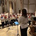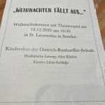 Unter der musikalischen Leitung von Aline Klieber, begleitet am Klavier von Lilian Sutikdja, erklangen stimmungsvolle Chorlieder, teilweise mit mutig vorgetragenen Solis einiger Kinder. Dazwischen wurde die Geschichte „Weihnachten fällt aus …“ von den Kindern mit viel Spielfreude erzählt und gespielt.