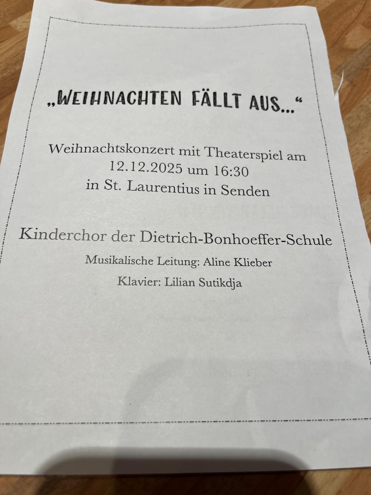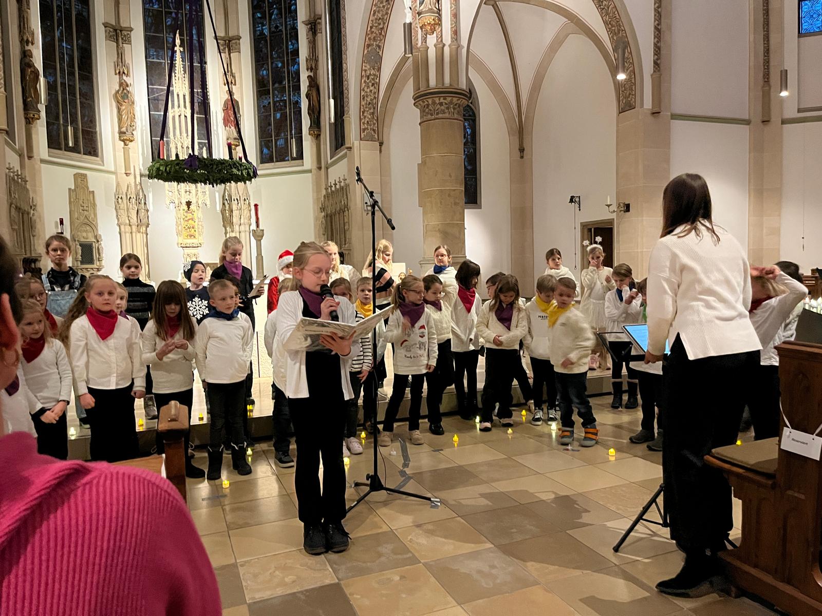 Am vergangenen Freitag verwandelte der Kinderchor der Dietrich-Bonhoeffer-Schule die bis auf den letzten Platz gefüllte St.Laurentius Kirche in einen Ort voller Licht und Weihnachtszauber. Die Kinder zogen feierlich mit Kerzen ein und sorgten sofort für eine besondere Atmosphäre.