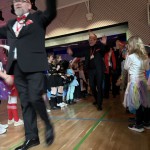 Los ging das nĂ€rrische Treiben noch in der Schule, doch dann setzte sich eine kunterbunte Karawane in Bewegung:  In einem fröhlichen Zug marschierte die ganze Schulgemeinschaft zur Steverhalle. Piraten, Prinzessinnen, Tiere, Superhelden und auch einige ohne KostĂŒm â alle gehörten dazu. Unsere ErstklĂ€sslerInnen reisten  mit dem Bus an.