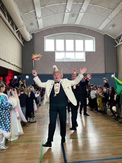 Doch der nĂ€rrische Besuch ging weiter: Auch der Karnevalsprinz Christian II. der Stadt MĂŒnster höchstpersönlich lieĂ sich das Spektakel nicht entgehen. Gemeinsam mit rund 300 SchĂŒlerInnen wurde auf der BĂŒhne gesungen, gewunken und gelacht. Senden Helau!