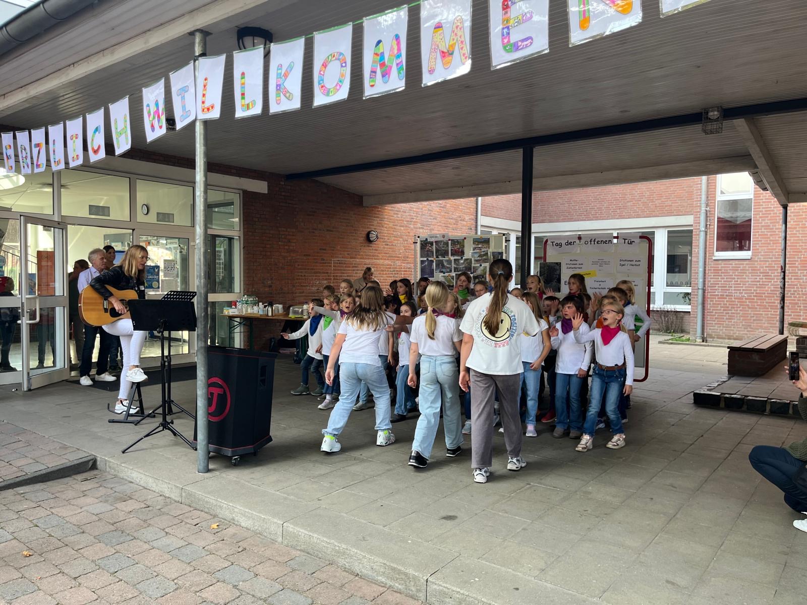 Sie sangen zur Begrüßung und sorgten sofort für eine fröhliche, offene Atmosphäre. Mit viel Lachen, guter Stimmung und zahlreichen Gesprächen wurde schnell deutlich, wie lebendig das Schulleben an der Bonhoefferschule ist.